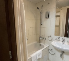 Хороший отель. Для 4*все есть: номера полулюкс большие, хорошее оснащение, есть все, как заявлено в описании. Есть банный комплекс, который работает по заказу, то есть только для того, кто заказывает. Есть лобби бар, где можно посидеть в любое время и за любым занятием. Есть два ресторана, что очень хорошо, так как в выходные очень много туристов и в городе везде большие очереди. Расположение отличное. Но всё-таки цена сильно завышена. Парковка платная. Панорамный ресторан переоценен. Кондиционер сильно дует и не регулируется по силе обдува. В общем, на одну ночь можно заехать.
