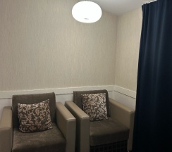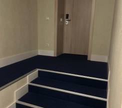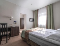 Бронировали на одну ночь номер для 2 взрослых и ребенка подростка. Проживали в номере 107 (стандарт двкхместный). По большому счету все понравилось, удобные кровати (кроме доп.места), постельное белье и полотенца белые, чистые, есть мини холодильник, на полу ковролин, санузел отличный, с душевой кабиной и теплым полом. Не понравилось : неудобные подушки, просто колоссальная слышимость, ну и хотелось бы гигиенический набор. Кстати, стоят три кружки, а чайника нет...