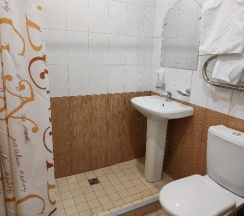 Отель вроде неплохой, но есть свои минусы. Во первых, в номере не было тапочек и зубных принадлежностей. В ванной комнате находился душ без каких-либо бортиков на полу. Вся вода текла прямо по всему полу. До 23.00 громко звучала музыка в ресторане, ее слышно через два этажа. Покушать вечером в гостинице нам сказали, что мы не сможем из-за проводимого мероприятия, видимо от которого и был весь шум. Пришлось выходить в кафе.