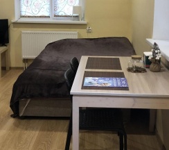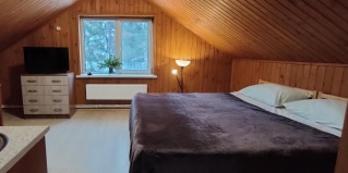 Апартаменты с двуспальной кроватью находятся на 2-м этаже. Очень комфортные апартаменты с большой кроватью. В апартаментах есть все необходимое для проживания: шкаф-купе, кровать, кухня с варочной панелью и посудой для самостоятельного приготовления еды, холодильник с морозильной камерой, обеденный стол со стульями, чайник, ЖК телевизор. Отдельная ванная комната с душевой, два комплекта полотенец, постельное белье, фен, бесплатный wi-fi и многое другое.