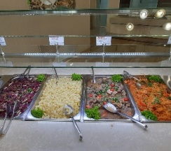1. столовая, еда очень вкусная, но иногда выбор был не особо интересный, конечно это зависит от вкуса человека, но мне иногда было сложно выбрать что взять, так как ничего не привлекало (но так было всего пару раз, в остальном всегда набирала всего понемногу)