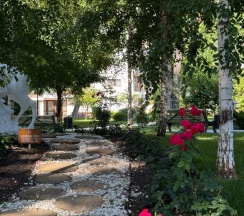 Отдыхали 28 июля 2025. Санаторий хороший. Территория очень красивая, уютная на 2-береговой. На первой линии поменьше, на первой сам медцентр и закрытый бассейн. До моря далековато со 2 линии.На территории большой бассейн для взрослых и деток. Плохо что бассейн до 8 часов или 18.работает .На прокат за денежку велики, самокаты , коляски , но они желают лучшего грязные ,выцветшие. Детская комната отличная, с детками играют и аппликации делают, рисуют.... Супер. Хотела еще отметить прачку(за отдельную плату и не дешево) в номере тазик есть , но когда ты с семьей тяжеловато выстирать все в тазике. Плохо что нет машинки стиральной 🤣 Гладильные доски на каждом этаже👍 .Номера так себе, ковролин грязный, прожженный. За такие деньги которые платишь за путевку, она не дешёвая. Хорошо когда от предприятия оплачивают., то еще ладно, 🤭4 звездами и не пахнет. Горничные приветливые, уборка на 3+,но убирают не все плохо. для деток красивые фигурки делают из полотенец🫶Wi-Fi ужасный.Аниматоры огонь деток развлекают, дети в восторге.На ресепшне встретили нас не приветливо, не объяснили куда идти, не помогли с сумками, мы первый раз были, заплутали немного. Вообще сам персонал добрый. Питание:хорошее, разнообразное. Но есть минусы:фруктов маловато, бывали даже испорченные, зелень в салатах тоже бывала нехорошая. Мне кажется за таким надо следить. Есть отдельные столы для семей с детьми, столы чистые , быстро убирают .Медцентр хороший, но мне не педиатр, не терапевт не понравилась, путем ни чего не объяснили не посоветовали. Видно только за деньги объясняют ...