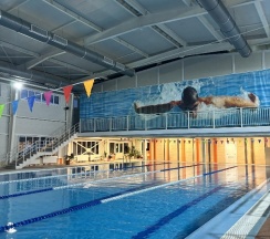 Бассейн большой и чистый, удобные раздевалки, полотенце можно брать сколько надо. Единственный нюанс, если едете в каникулы детские, то могут быть сборы по плаванию и не все дорожки будут работать.