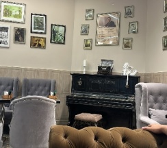 Заходили позавтракать сюда, так красиво, эстетично. По коридору идёшь и правда попадаешь в жизнь Чехова - на стенах висят картины с ним и строчки из стихов. Интересная задумка🙂 Также интересная подача яичницы - в маленькой сковороде на деревянном подносе😉 Всё было вкусно и цены приемлимые. И само здание такое красивое💫