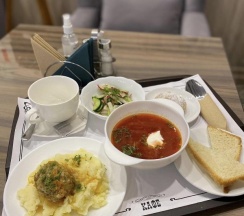 Останавливались в этой гостинице на несколько дней. Очень понравились вкусные завтраки и обеды, обслуживание быстрое, а официантка Анна — приветливая и внимательная. Из минусов — комнату невозможно проветрить и плохая шумоизоляция. В остальном всё хорошо, приятное место для кратковременного проживания.