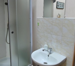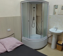 В номере есть душевая кабина и раковина. Напор воды хороший, вода горячая. Но в кабине забит слив, и вода не уходит.