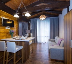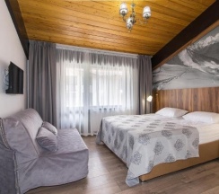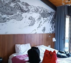 Приятно встретили на ресепшене, хороший номер всё чисто приятно, в дух шале присутствует очень приятная отзывчивые женщины которые убирали номера,. дворник. Есть сушильная камера очень классная всё плохо за ночь после лыж. Разжигали камин по просьбе. Есть проигрыватель пластинок и очень редкие пластинки разрешают слушать если умеете пользоваться. А единственное что было в номере неплотно прилегала дверь и вот это слышно дорогу.