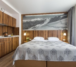 Классный отель, расположение, есть детская комната и площадка. В номере отопления нет, но нам было комфортно. Были с 28 по 30 декабря. Был номер с кухней, всё работало, посуды хватило. Спасибо, приедем ещё!
