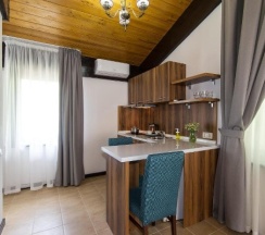 Отдыхали в апартаментах с балконом вчетвером, всё очень понравилось. Территория ухоженная, красивая, есть беседки для отдыха, бассейн и шезлонги. В номере всё необходимое,чистое,неушатаное. Посуда, чай,кофе,столовые принадлежности. Нам понравилось,вернёмся обязательно!!