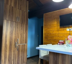 Очень чисто, уютно, рядом есть столовая патиссон, магнит, пятерочка. Сам дом из дерева, очень монументально выглядит хол в шале где есть камин но воспользоваться им не удалось, мебель внизу была на реставрации. Персоналу нужно больше давать информации при заселении. Рассказать какие услуги есть и как и чем можно пользоваться
