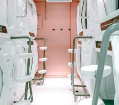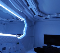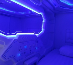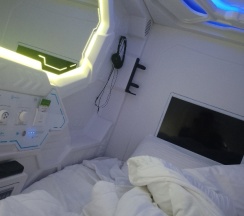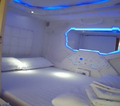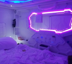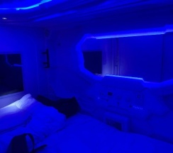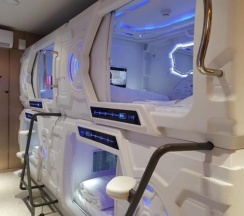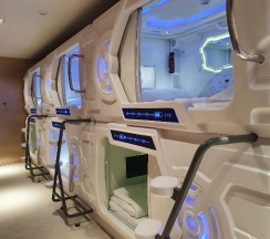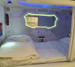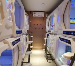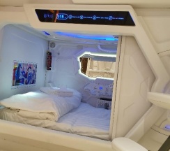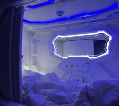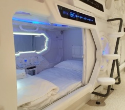 Чистое белье, чистые полотенца, приветливый персонал, но абсолютно ужасные душ и туалет(места мало, плесень повсюду, дверь не закрывается) и стойкий запах носков бьёт в нос при входе в кафе и не покидает вас даже в капсуле.