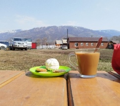 Отличное атмосферное место в 2 км от центра села Усть-Кокса, но уединенное живописное. Заезжали семьей с 5 детьми, номер большой, просторный, все чисто, туалет и душ в номере. Приятным бонусом детская кровать для малыша. Все белье выглажено, аккуратно заправлено. Очень приятная опция- завтрак. Сотрудники базы приготовили вкуснейшую кашу, блины со сгущенным молоком и сметаной. Мы остались довольны, рекомендуем всем посетить данное место и душевно отдохнуть.