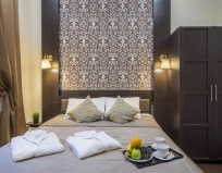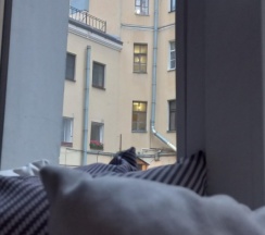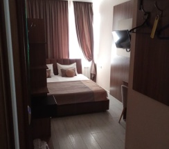 Неплохой номер, маленький. Думаю, если бы было двое человек, то тесновато было бы. Жила во втором корпусе напротив входа, поэтому очень сильно было слышно открытие домофона, так же у моего номера была микроволновка и кулер, поэтому часто у моих дверей было много людей. Мне это не помешало. От метро далековато - нужно ехать на автобусе, но близко Мариинский театр, поэтому удобно ходить на вечерние спектакли. Местами в номере отошли обои, немного ржавая полочка в душе, на шкафах пыль, я все намыла перед сном, так как я аллергик. В целом, все неплохо