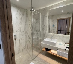 Из минусов: Бассейн пока не работает, но нигде об этом не написано, и при заселении нас не предупредили. В ванной слив в душе не справляется — вода скапливается, пол постоянно мокрый. Ещё подтекал унитаз, но после вызова мастера ничего не изменилось.