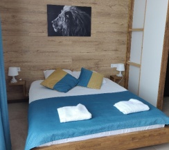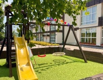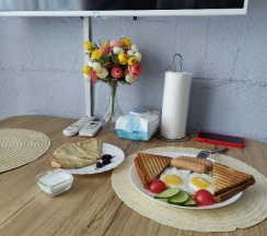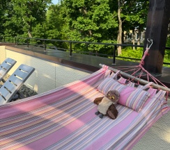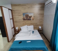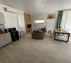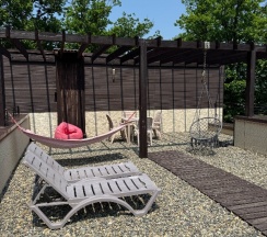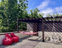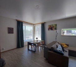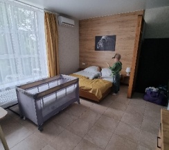 Прекрасное место для отдыха, чтобы сбежать от городской суеты. Мы жили в большом семейном номере с террасой, номер из двух комнат спальня и гостиная совмещенная с кухней в стиле лофт. Выход на террасу не прям из номера, нужно выйти из номера и подняться на этаж выше. В номере все есть для комфортного проживания, телевизор, холодильник (не большой), стир.машинка, сушилка для белья, гладильная доска, кондиционер, кухня (посуды достаточно тарелки бокалы стаканы, рюмки, кастрюли, сковородки, ложки вилки ножи, все можно приготовить без проблем). Мы отмечали др ребенка, посуды вполне хватило всем гостям. Детская площадка приемлемая, ребенку понравилась. Из минусов только вай фай не очень хороший, но это кому как может он не нужен вовсе на отдыхе, завтраки мы заказали только в первый день, цена качество не совпадают, мы закупили продуктов и все сами готовили, на вкус и цвет как говорится. В 5 ти минутах езды Реми, Космос и множество магазинов, единственное нет автокафе с готовой едой. Рекомендую данный апарт отель к отдыху для всех, особенно если едите из других городов, так как все есть для проживания.