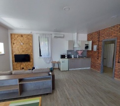 Двойственные впечатление остались от посещения данного места. В целом место могу рекомендовать. Останавливались в 4ом номере с террасой. Сам номер просторный, гостинная с диваном и отдельная спальня, оформленными отделкой с элементами лофт.