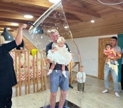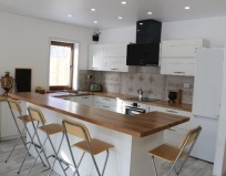 Для бытового комфорта предусмотрено все и даже больше. Дом симпатичный, аккуратный, ничего лишнего, за окном светят лампочки, а в доме столько вариаций создать уютное освещение, что хватит развлечений на долго. В центральной гостиной ещё стояла новогодняя елка, что создавало дополнительное ощущение праздника, будто мы продлили новогодние каникулы. Готовили борщ на компанию из 18 человек, помещались все за одним дружным столом, спали в раздельных комнатах на больших кроватях, меняли полотенца каждый день, занимали одновременно 3 ванные комнаты. Веселились в сугробах, катались со снежной горки, которую подготовили хозяева, очень кстати, потому что мы попали в тот самый снегопад и были в снежном заточении трое суток. Радость, что для детей предусмотрена игровая зона с множеством игрушек, это позволяло отвлекать и развлекать. Стирали и сушили вещи. Сухая обувь – это важно, в доме везде теплые полы. Смотрели фильмы большей компанией, заряжали все телефоны. В экстренной ситуации чувствовали поддержку и заботу. Добрые люди доставили нам провианты. В трансфер влезли все чемоданы, горнолыжное снаряжение, взрослые и дети. Спасибо за тепло.
