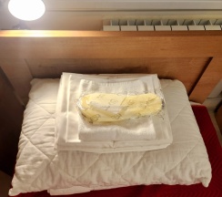 На завтрак ходили в другой корпус, через "3 звизды", ибо мост через Монастырку был на ремонте, но это с пониманием можно отнестись. Самое печальное - в ванной комнате нет полотенцесушителя, если что простирнуть по мелочи, то сушить через танцы с бубном. Для прохода в этот корпус электронную карту не дают, поэтому при заходе в корпус охрана просит показать в видеодомофон ключи от номера, что не удобно, если вы разделитесь с семьей. Показывал в видеоглазок свои домашние ключи.