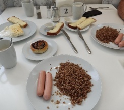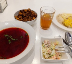 А самый огромный плюс это конечно Трапезная. Завтрак входил у меня, шикарная творожная запеканка, там есть ещё омлет, каши и кофе с булочкой. Обед просто супер! Всё так вкусно, с душой , порции огромные.