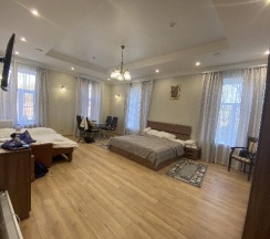 Был тут летом. Номер на 3 был большим, просторным. Удобная кровать, подушка и в целом место сна. Тумбочки, свет, шкаф, сейф, вешалки, зеркало всё было хорошо. Ванная очень понравилась, душ, раковина, полотенца, гели для душа, халаты все было на высшем уровне. Были включены завтраки, порции огромные, вкусные и сытные. Отношение персонала очень понравилось, был милый котик. Советую, считай гостиница находится центре, но было тихо и уютно