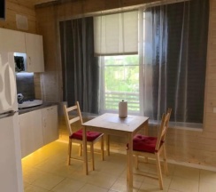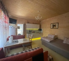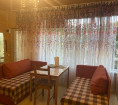 Хорошее место! Благодарны! Рекомендую! Чисто, уютно, добрейшие люди! Милый дружелюбный пёс и деловой котэ) Отдыхали в домике с компактной кухонкой (в наличии чайник, микроволновка, тарелки, ложки, вилки, ножи, бокалы, кастрюля...) Пол с подогревом! Дворик с мангалом крохотный, но уехали только с приятными впечатлениями!
