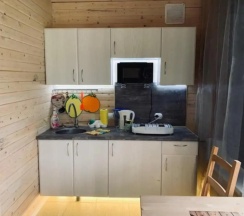 Понравилось: Очень уютный домик с баней. На первом этаже кухня небольшая с холодильником и микроволновкой, все необходимое есть. Душевая кабина, туалет и даже есть камин, который топит баню. Мы были в феврале, тепло и сухо!