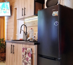 Хорошее место! Благодарны! Рекомендую! Чисто, уютно, добрейшие люди! Милый дружелюбный пёс и деловой котэ) Отдыхали в домике с компактной кухонкой (в наличии чайник, микроволновка, тарелки, ложки, вилки, ножи, бокалы, кастрюля...) Пол с подогревом! Дворик с мангалом крохотный, но уехали только с приятными впечатлениями!