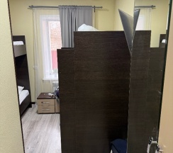 Двухместный номер очень понравился. Санузел чистый, удобный, душ работает хорошо. Кровати удобные, спать комфортно. С улицы звуков не слышно. Из минусов — слышно разговоры из другого номера. Мы легли достаточно рано, в 21 ч, и через некоторое время были разбужены разговорами других постояльцев, которые слушали ещё в течение часа. Стены картонные. В хостеле живёт много и видимо на продолжительное время иностранных рабочих. До оценки 5 в связи с этим не дотягивает — нам повезло, было не шумно, но нет гарантии что так всегда.