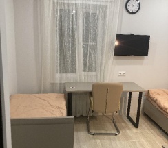Из плюсов: хорошие кровати, удобные мягкие матрасы. Все чисто, прибрано. Над каждой кроватью свой светильник, две розетки. Кухня большая, чистая. Есть своя парковка. Рядом отдел Росгвардии. Магазины в шаговой доступности.