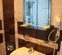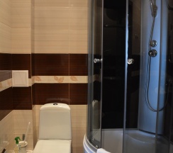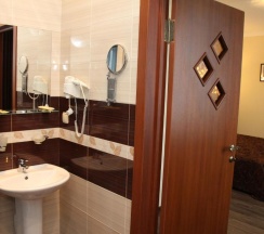 Уютный номер, лучший вариант для деловых людей. Общая площадь 25 кв. м. В номере имеется: современный сан.узел, холодильник, ТВ, электрочайник, набор необходимой посуды, фен, индивидуальный набор туалетных принадлежностей, тапочки, кондиционер.
