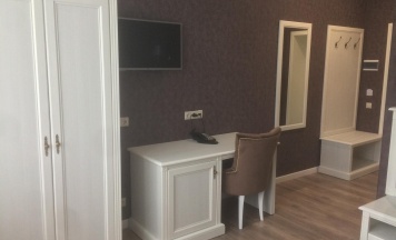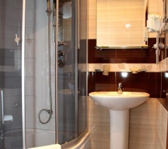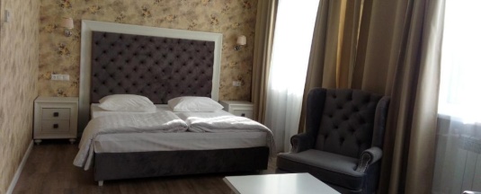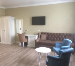 Просторный и уютный номер удобен для размещения одного либо двоих человек на основных местах и двоих – на дополнительном. Отличается повышенным комфортом и удобством. В номере имеются: двуспальная кровать, жк-телевизор, диван (двуспальный раскладной), журнальный столик, два кресла, мини-холодильник, кондиционер, телефон. В ванной комнате: душевая кабина, фен, косметическое зеркало, халат, тапочки, комплект полотенец, набор гостиничной косметики. Комплимент от отеля плитка наивкуснейшего шоколада в день заезда! Во всех номерах отеля доступен Wi-Fi Интернет. Уборка номеров осуществляется ежедневно. Парковка для автомобиля на территории отеля предоставляется бесплатно.