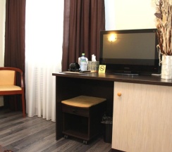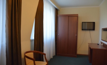 Стандартный одноместный номер станет комфортным и уютным местом размещения одного гостя. К Вашим услугам: полутороспальная кровать, письменный стол, шкаф, мини-холодильник, жк- телевизор, кондиционер, телефон. Номер оборудован собственным санузлом. В котором имеется: душевая кабина, фен, косметическое зеркало, комплект полотенец, тапочки, набор гостиничной косметики. Во всех номерах отеля доступен Wi-Fi Интернет. Уборка номеров осуществляется ежедневно.Парковка для автомобиля на территории отеля предоставляется бесплатно.