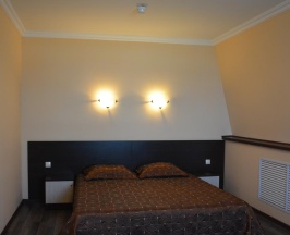 Двухкомнатный номер повышенной комфортности, общей площадью 42,3 кв. м. В номере имеется: современный сан.узел,холодильник,ТВ,электрочайник,набор необходимой посуды,фен,индивидуальный набор туалетных принадлежностей,махровый халат,тапочки,сейф,кондиционер