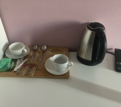 Номер был компактный, но чистый и аккуратный. Вся мебель в хорошем состоянии, бельё свежее, подушки удобные, матрас ровный. В ванной полный комплект: гель, шампунь, мыло, полотенца разных размеров. Был чайник, несколько пакетиков чая, кофе и сахара — мелочь, а приятно после дороги. На каждом этаже кулер, но в номере при заезде еще стояла питьевая вода бутилированная.