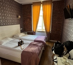 Нам все понравилось! Спасибо! Интересный интерьер. Белье и полотенца белоснежное, санузел чистый, дважды за 4 дня была уборка номера. В номере есть все необходимое:чай, кофе, сахар, чайник, холодильник, средства гигиены, телевизор. Завтрак достаточно разнообразный и вкусный, напитки также на любой вкус. Из минусов есть шум с улицы при открытых окнах(
