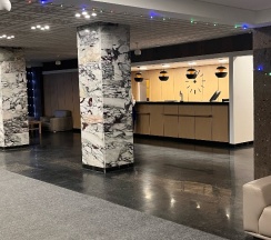 Гостиница недавно отремонтирована, номер был чистый, удобный. Да, прямо под окнами железная дорога, благо в номере был кондиционер. В целом тихо, слышно только редкие поезда и чаек. Расположение хорошее, рядом набережная, пятерочка, до вокзала минут 25 пешком. На каждом этаже есть небольшая зона с креслами и столиками, где можно посидеть, на 11 этаже вид лучше всего и большой стол.