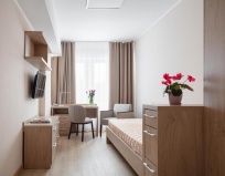 Уютные номера, вкусные завтраки, есть спортзал и прачечная. Единственное но - в двухместных номерах письменный стол один. Немного неудобно, но да ладно, на каждом этаже есть помещение, где можно позаниматься