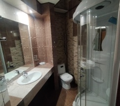 Снимали номер комфорт плюс. Узнав о такой стоимости, мы остались довольны условиями. У нас была большая двуспальная кровать. В комнате сделан ремонт, правда довольно своеобразный. Но главное, что чисто внутри. Предусмотрена своя ванная комната со всем необходимым сантехническим оборудованием. Также у нас был телевизор с подключённым спутниковом телевидением. Как раз чтобы отдохнуть после долгой дороги - это идеальное место. По уровню обслуживания вопросов тоже нет. Персонал был к нам доброжелателен, приветлив. Помогли с заселением. Номер кстати тёплый.