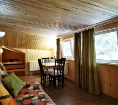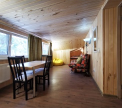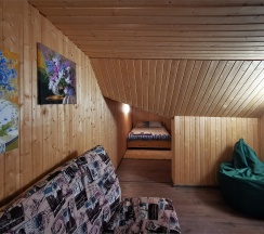 Очаровательный домик с живописным видом на лес. К услугам гостей: общая кухня, уютная гостиная, душевые и санитарные комнаты. За дополнительную плату можно воспользоваться прачечной, сауной, баней и мангалом.