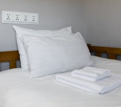Бронировал у них двухместный номер. Предоставили полотенце, мини мыло, шампунь, чайник, чай. Также был телевизор со смарт ТВ. Я доволен.