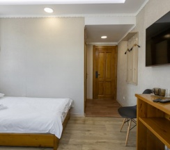 Забронировал у них одноместный номер по приемлемой цене. Номер простой, но уютный.