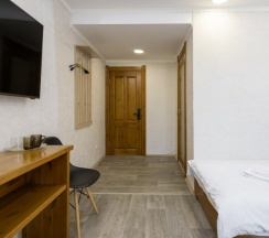 Стандартный небольшой одноместный номер с ванной комнатой.
