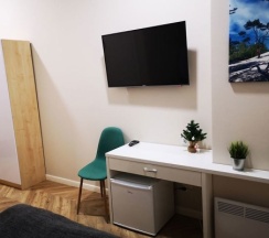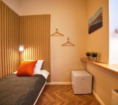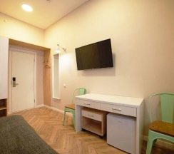 Не понравилось: В одноместном номере очень не хватает полок или шкафа - приходится складывать вещи на подоконник, это неудобно. Мини-бар в холодильнике кажется излишним - лучше поставить в холле прозрачный холодильник, если это так необходимо.