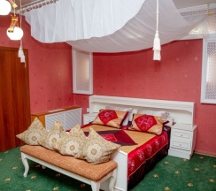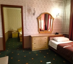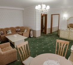 В просторном однокомнатном номере Полулюкс вы будете окружены комфортом и уютом. Он состоит из прихожей, комнаты, санузла. Интерьер выполнен в классическом, современном стиле, который понравится любому гостю. Спальная зона располагает к отдыху и позволит с комфортом разместиться одному или двум гостям. Здесь есть большая, мягкая двухспальная кровать, прикроватные тумбочки, шкаф, ЖК телевизор, сейф. Также в номере предусмотрена обеденная зона, где находится стол, стулья, холодильник с мини-баром. В персональном санузле есть душевая кабина, унитаз, раковина, фен.