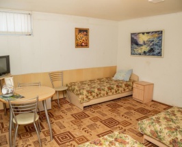 Мы предлагаем нашим гостям эконом-вариант комфортного размещения — койко-место в 4-местном номере. В уютной комнате располагаются односпальные кровати с прикроватными тумбами, телевизор, холодильник, есть обеденная зона со столом и стульями. Современный дизайн располагает к хорошему отдыху после тяжелого дня по доступным ценам. У каждого номера есть персональный санузел с унитазом, душем, раковиной, феном и туалетными принадлежностями.