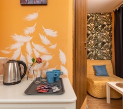 Каждый номер нашего отеля имеет индивидуальный дизайн, стены превращены в огромные картины с позитивными жизнеутверждающими мотивами. В этом номере могут разместиться до 2-х человек