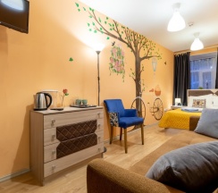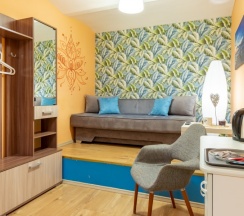Каждый номер нашего отеля имеет индивидуальный дизайн, стены превращены в огромные картины с позитивными жизнеутверждающими мотивами. В этом номере могут разместиться до 3-х человек