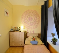 Каждый номер нашего отеля имеет индивидуальный дизайн, стены превращены в огромные картины с позитивными жизнеутверждающими мотивами. В этом небольшом уютном номере может разместиться 1 человек