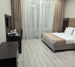 Хороший отель, новый. В номере в принципе все есть халаты, тапочки, полотенца, гигиенические принадлежности. Ремонт новый. Есть некоторые вопросы по чистоте и запаху, в номере присутствует какой-то запах, толи от сигарет, то-ли от канализации, не разберёшься) подают завтрак шведский стол, по цене 550 рублей, в принципе неплохо. У нас только возникла проблема с душем, стоит термостатический смеситель и там на 38 градусах поступает горячая вода, не смогла прокрутить на температуру ниже. А так отель рекомендую. Для Краснодара очень неплохо.