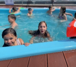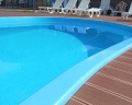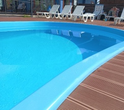 Раздевалки , душ на улице это тоже здорово и удобно когда приезжаешь просто в бассейн.Батуты для детей , площадка для баскетбола , качели , много лежаков для загара . Бассейны чистые , вода теплая комфортная 👍